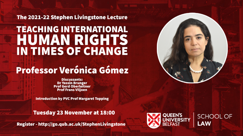 On 23 November, the School of Law at Queen’s University Belfast hosts Professor Verónica Gómez, who will deliver the 2021-22 Stephen Livingstone lecture via MS Teams.