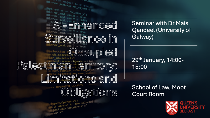 AI-enhanced surveillance is used as a tool to collect mass amounts of data in both times of peace and war. In situations of settler colonialism and military occupation, surveillance takes a form of alien domination and subjugation. In Palestine, surveillance serves as a central tool to maintain Israel’s settler colonial project. Israel heavily relies on collecting personal and sensitive data, including biometrics, to monitor and control the Palestinian people, the protected persons under international humanitarian law (IHL). IHL does not provide for a comprehensive framework on whether the occupying power has the authority to collect, retain and disclose data nor how to maintain strict usage of AI-enhanced surveillance. This seminar examines the legality of mass datafication of occupied people and determines potential restraints on and obligations of the occupying power under the general principles of the law of belligerent occupation. The discussion focuses on the Occupied Palestine and extents to highlight how AI-enhanced surveillance constitute a means to genocide.