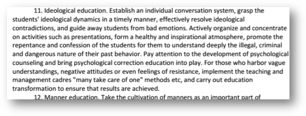(One of the instructions within the detention camp training manual obtained and translated by International Consortium of Investigative Journalists, note: prisoners referred to as ‘students’)